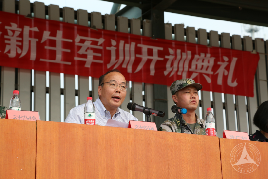典礼上,承训部队进行了队列、军体拳、长棍术、匕首操、刺杀操和旗语部分军事科目的示范表演,军训团孙团长结合军训的意义,鼓励大家服从命令、听从指挥,刻苦训练、积极进取,勇于吃苦、克服困难。随后,教官代表和学生代表分别做了表态发言。刘守训副书记在讲话中强调了习近平总书记对当代青年提出的“勤学、修德、明辨、笃实”八字箴言,并向同学们提出了“虚心学习、传承部队优良作风,克服‘骄、娇’二气,热爱集体、团结友爱”等三点要求,期待我校2016级学生军训工作圆满成功,向军训三十年献礼。