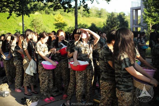 下午,军训团还组织半数同学完成了第一次洗澡。