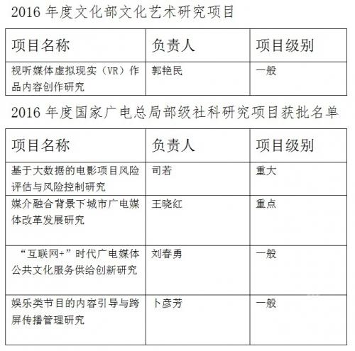 本年度我校共申报国家社科项目78项,国家艺术科学项目35项,广电总局部级社科研究项目80项,北京市社科项目76项,为我校历史上申报数量最多的一年。