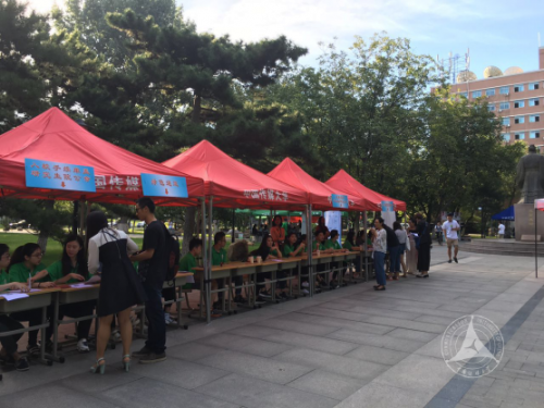 早上6:30左右,孔子像旁,核桃林里,各学部、学院的迎新人员陆续到位并布置好迎新现场。研究生院在一号楼前设立了新生报到处,研究生院领导及各部门工作人员全部参与到迎新工作中。