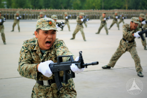 在军训科目汇报表演中,同学们分别汇报了班队列、军体拳、匕首操、刺杀操、内务和紧急集合、擒拿术、旗语、拼图组字和队列方队等科目的训练情况。各方队表演中,除了整齐的方块队以外,在刺杀操、匕首操等科目表演中,还变换了队形,变单一方向为多方向,更增加了难度和观赏性。