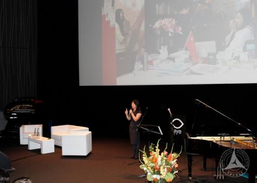整场典礼的流程设计别具一格,用西洋乐器演奏中国音乐,以“中西合璧”和“中西对话”为主题,巧妙连接了两轮精彩的论坛:教育领袖论坛和企业精英论坛。论坛由荷方院长曹雪飞主持。作为教育论坛的“前言故事”,孔子学院优秀学生代表安迈以风趣幽默的演讲跟与会嘉宾分享了他在两年里从汉语初学者到HSK5级水平的学习经历,给在场嘉宾留下了深刻印象。奈梅亨市八所中学联盟主席Yolande Ulenaers女士强调了学习汉语和中国文化对于培养国际化人才的重要意义。Yolande女士曾在去年参加了孔子学院组织的中学校长访华团来我校访问,在访问中对中国和我校印象深刻、赞誉极高,并向荷兰教育部长做了汇报。