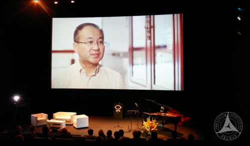 典礼上,吴恳大使与荷兰教育部总司长Hans Schutte共同亲手为中心揭牌,并致贺词。格罗宁根大学校长、国家汉办孔子学院总部理事Poppema教授代表格罗宁根孔子学院理事会致开幕词。随后,大屏幕上播放了荷兰驻华大使Ron Keller先生和我校胡正荣校长的视频致辞。胡校长作为格罗宁根孔子学院理事会主席,在致辞中介绍了我校对孔子学院的大力支持,并对该孔院在发展中迈出了新的重要一步表示衷心的祝贺,希望阿姆斯特丹中心的成立,更有力地促进中荷在教育文化和商务方面的交流与合作。
