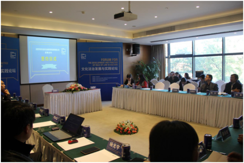 论坛以“文化法治发展与实践”为主题,从公共文化与文化产业的角度探讨文化法治对于保障文化改革和推动文化发展的积极作用,既有理论性,也有实践性。十八届四中全会通过的《中共中央关于全面推进依法治国若干重大问题的决定》开启了中国法治建设的新世代,前所未有的文化大发展也迫切需要法制化和规范化建设,本次论坛的召开恰逢其时,其成功举办为政府创新文化产业与公共文化服务管理思维提供了法律路径参考,推动了文化法治学界前沿研究成果,深化了文化产业发展中法律保护实践经验交流,对推进我国文化事业和文化产业向着法制化、规范化的方向繁荣发展具有重要意义。