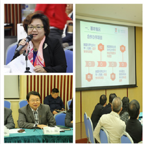 会议由教育部国际司司长许涛同志主持,他介绍了会议目的是为了了解中外合作办学高校党建和思政工作的开展情况,总结经验做法,找准存在问题,研究提出适应新形势下加强党建工作的对策措施。同时为修订相关法律法规进行调研,为政府决策提供依据。中组部组织二局副局长刘文强调了中外合作办学开展党建工作的必要性,他指出中外合作办学的党建工作虽然刚刚起步,体制和机制都有待完善,但各个学校在实践中都有很好的经验,相信将来会大有作为。并对中外合作办学党建工作提出了四点要求:一要坚持党对中外合作办学的领导;二要发挥党组的政治核心作用,做中外合作办学方向的引领者;三要在中外合作办学的全环节牢牢掌握意识形态工作领导权和话语权;四要促进中外合作办学,鼓励创新实践,为教学育人服务。