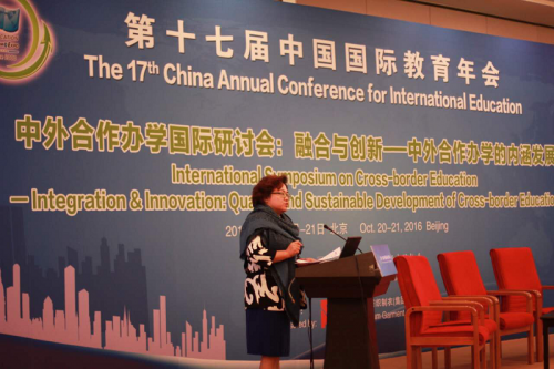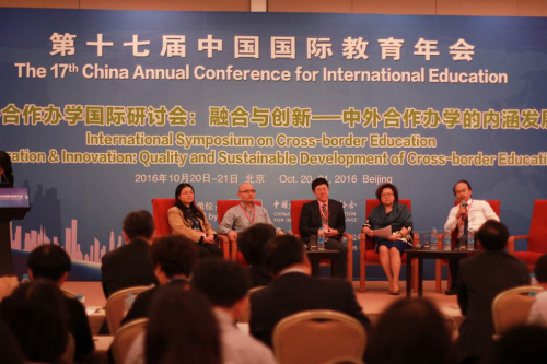 2016年第十七届中国国际教育年会 “中外合作办学国际研讨会”在北京国际会议中心举行。会议以“融合与创新——中外合作办学的内涵发展”为主题,来自各级教育主管部门、中外教育机构、中外质量保障机构、驻华使馆、中外合作办学机构和项目代表等500余人参加了盛会,就如何深入挖掘中外合作办学的巨大潜能,通过融合与创新打造升级版的中外合作办学,为中国高校建设世界一流大学和一流学科做出贡献等议题展开深入务实的讨论。
