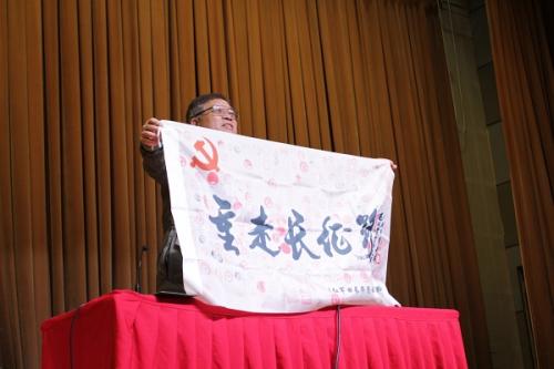 报告会在新四军老战士带领全场齐唱国歌之后正式开始。刘守训副书记首先代表学校致辞,他首先感谢新四军老战士以及北京新四军研究会对学校活动的大力支持,在简要介绍学校基本概况与学校开展的纪念长征胜利80周年主题活动之后,他借用习总书记在纪念长征胜利80周年重要讲话中的提到的“长征精神是中国共产党人红色基因和精神图谱的重要组成部分”,要求广大在校青年学生加深对长征的意义、长征的价值、长征的文化、长征的精神的把握和理解,走好这代人的“长征路”。