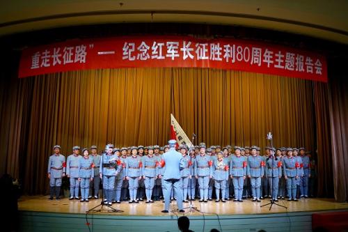 (通讯员 陈莹峰 周瑶 刘子菲 摄影 程羽加 齐曼竹)2016年11月19日下午,“重走长征路”纪念红军长征胜利80周年主题报告会在我校综合楼400人报告厅举行。报告会由北京新四军研究会和传媒大学团委联合举办,通过主题报告、图文讲解、现场交流以及文艺表演等形式,讲述长征故事,重温光荣历史,进一步增强大学生的使命感和责任感。该活动不仅是对长征胜利80周年的纪念,更是对长征背后“中国精神”的弘扬和传承。