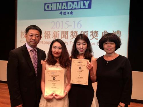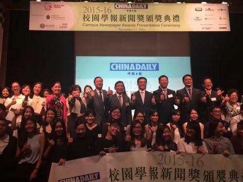 (通讯员 洛卓嘉措 郝帅)11月17日,由《中国日报》主办的“2015—16校园学报新闻奖”颁奖典礼在香港会展中心举行。我校新闻传播学部新闻学院院报《新传时报》在两岸四地高校传媒评比中喜获佳绩,一举夺得“最佳新闻摄影图片”、“最佳版面设计”和“最佳经济新闻报道”三项大奖。新闻传播学部师生代表共4人参加颁奖典礼。