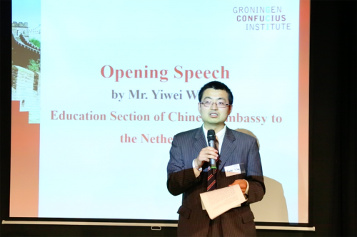 (中国驻荷兰大使馆教育处官员王怡伟发表讲话)