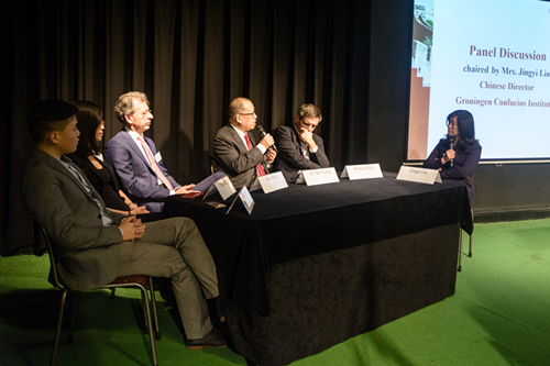 研讨会还设置了一个体现多种视角的小组讨论环节,由格罗宁根孔子学院中方院长、我校马克思主义学院副教授刘婧一主持。中国工商银行阿姆斯特丹分行副总经理金伟煌、Triple3D设计平台创始人兼总裁胡烨川与此前发言的各位嘉宾一道,以创新创业、中外投资为主题展开讨论。每位嘉宾结合自身经验,分享了各自的观察和独到见解,并与现场观众进行互动交流。