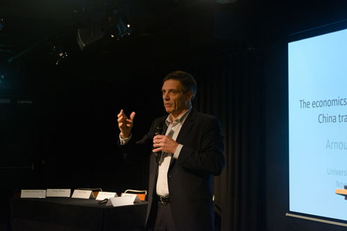 鹿特丹管理学院副院长张颖、阿姆斯特丹大学教授阿诺德•博特(Arnoud Boot)分别从中国和荷兰两个视角,结合自身研究成果做了内容详尽的主旨演讲。张颖教授通过丰富的数据和图表展示了中国经济的飞速发展,并结合一带一路战略和全球经济形势,分析了中国经济转型的机遇和挑战。阿诺德•博特(Arnoud Boot)则系统梳理了中荷经贸往来的历史和现实,从多角度论述两国经贸合作的重要性,并提出今后两国进一步合作的空间。