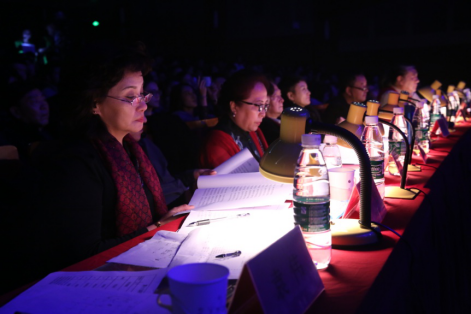 在形式多样、内容丰富的参赛作品依次亮相之后,担任本届大会评委嘉宾的任志宏老师、张凯丽老师、李立宏老师还分别给大家带来了精彩的朗诵节目。任志宏老师演绎了《满江红》,大气磅礴、掷地有声;张凯丽老师用吟诵的方式为大家展现了《虞美人》,让人忧思难忘;李立宏老师朗诵的《江城子•乙卯正月二十日夜记梦》则是字字带泪、情意缠绵,令人回味无穷。