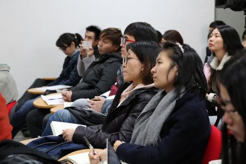 (通讯员 朱星辰)11月16日下午,学校人事处教师发展中心与艺术学部本科教学管理办公室联合举办“艺英课程建设计划”优秀课程教学示范观摩活动。艺术学部潘桦、王铉、张晗三位优秀课程主讲教师分别为全校教师进行了20分钟的教学示范。学校人事处副处长霍淑芬、艺术学部学部长段鹏为活动致辞,北京电影学院导演系主任王瑞、学校电视台台长乔保平、艺术学部研究生教学管理办公室主任付龙出席活动并现场点评,来自全校的五十多位教师和学生现场观摩了此次示范课。