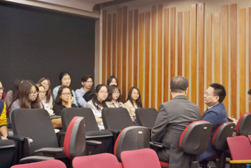我校领导在巴西南大河州联邦大学ILEA报告厅与留学生们进行了亲切的交谈,询问同学们在巴西留学期间的学习和生活情况,也非常关心他们的居住环境和饮食习惯。在座谈中,袁军副校长说:“我校是全国最早开设葡萄牙语专业的高校,葡萄牙语也是我校的一个品牌专业,因此希望同学们能积极适应国外生活,培养多元文化思维,增进跨文化交际能力,同时珍惜宝贵的赴巴学习交流机会,互相学习,共同进步,学有所获。”并关切地提醒每一位留学生在国外一定要特别注意自身财物以及外出时的安全,关照他们要结伴出行、安全第一。随后,校领导还给同学们送上了来自中国的温暖礼物。