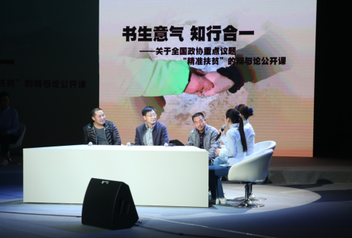 在最后的互动提问环节,同学们与张家口万全区扶贫办主任施凯宇、北新屯乡副乡长和村民代表孙大叔共同回顾了张家口的扶贫之路;与云南漾濞县县委副书记高云磊畅谈云南漾濞的扶贫经验;中央电视台主持人欧阳夏丹也连同学生一起与北京市农林科学院院长李成贵、中国扶贫基金会秘书长刘文奎共同探讨了学者与NGO的扶贫理念。