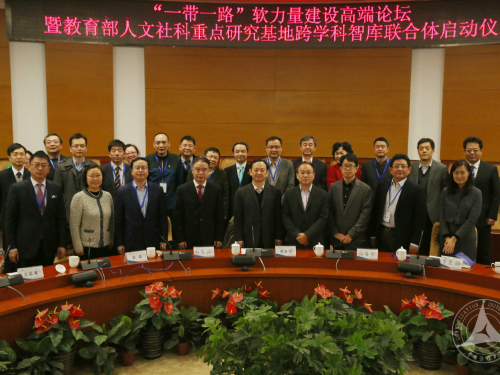 (新闻中心记者 阎玺)1月7日, “‘一带一路’软力量建设高端论坛暨教育部人文社科重点研究基地跨学科智库联合体启动仪式”在我校举办,宣告首家高校跨学科智库联合体正式成立。该智库联合体由我校国家传播创新研究中心联合八所高校十家人文社科重点研究基地共同组建。