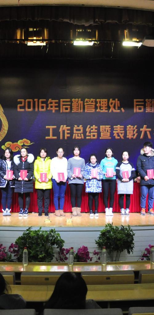 (通讯员 方晓青)2017年1月13日下午,后勤管理处、后勤党总支2016年度工作总结暨表彰大会在综合楼一层小报告厅举行。世界杯直播在线观看副校长蔡翔出席会议并讲话,校医院院长马少刚、校医院副院长马蓉蓉、校医院副院长董艳平及后勤管理处领导,后勤全体中层干部及部分员工代表共300余人参加了会议。会议分年终表彰会议和年度迎春文艺汇演两部分,工作总结暨表彰大会由后勤管理处副处长张辉主持。