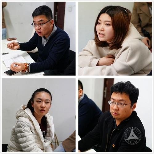校研究生会主席赵雨辰同学表示:学生干部要在学习工作生活中起到带头作用,学习国家党政党规是知识储备的重要部分;校学生会主席房宽同学认为:校级团学组织的工作要深入到各个班级各个同学,起到引领和倡导的责任;校红十字会学生会长温晓霞认为:思想工作不是强迫性的,需要建设成一种社会共同的价值观,大学生是社会的未来,大学生对社会价值的引领是很重要的;校团委文化事业部学生部长黄琳认为:当代大学生的政治敏感性不足,在今后举办的合唱比赛,可以在其中多宣传国家政策性的东西;研究生支教团来特同学表示:要将自己的支教工作与“一学一做”中的“西部计划”结合起来,做足准备,服务西部;校团委实践部学生部长马睿烽表示:实践是思想政治工作不可缺少的一环,要让更多的同学们参与到暑期社会实践中,培养同学们的担当精神。现场的20余位师生先后发言,交流讨论的气氛十分热烈。