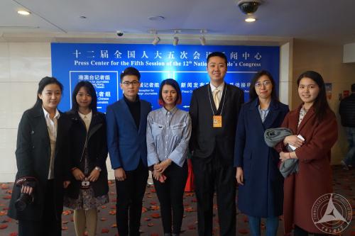 (通讯员 孙菁文 摄影 孙菁文、王梓霖)3月8日上午,十二届全国人大五次会议外交部记者会在梅地亚中心举行。我校新闻传播学部2016级国际新闻传播学硕士班的6名学生有幸参与。这是国新硕士班的同学们连续第三年深入两会现场。