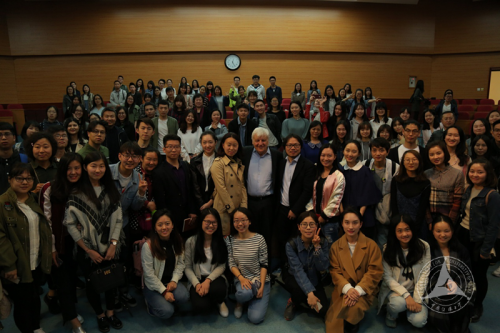 雅克•贝汉发表讲话,他对受聘为学校的名誉教授和中国纪录片学院奖评委会荣誉主席感到荣幸,并向在场师生阐释了纪录片对于当今社会和人类自身的意义。
