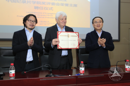 胡正荣校长,新闻传播学部党委书记、副学部长胡芳,新闻传播学部副学部长、中国纪录片研究中心主任何苏六,新闻传播学部副学部长、新闻学院院长刘昶,《地球四季》执行制片人Olli Barbe,法国使馆影视专员文娜,香榭荔舍国际公司总裁李明瞾等出席聘任仪式。人事处处长夏丹主持聘任仪式。
