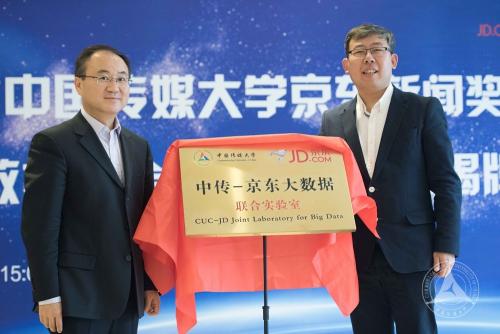 在双方领导的见证下,我校陈文申书记向京东集团孙志祥副总裁颁发了“世界杯直播在线观看京东新闻奖学金”捐赠证书。同时,京东集团副总裁宋旸与我校胡正荣校长共同为“中传-京东大数据联合实验室”揭牌,宣告该实验室的正式成立。
