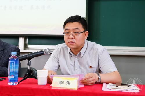校团委书记、青马学院执行院长李伟随后向各位与会领导和学员介绍了青马学院的基本情况,主要从学院成立、首期学员招募、学制学时、教学安排和考核三个方面做了具体说明和介绍。