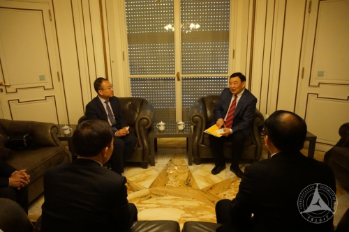 代表团还赴中国驻意大利大使馆教育处,拜访了罗平教育参赞。罗平参赞详细介绍了意大利教育合作的相关情况,胡正荣校长向罗参赞给予学校的各方面支持表示感谢,并期待使馆教育处在推荐来华留学生、孔子学院申办、与意大利高校的交流合作等方面,给予我校更大的支持和帮助。
