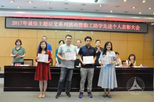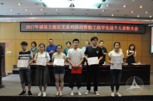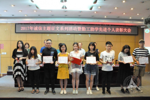 (通讯员 杨璇 李忠利 摄影 李忠利)5月31日,2017年诚信主题征文系列活动暨勤工助学先进个人表彰大会在44号楼一层报告厅举行。大会表彰了勤工助学先进个人71名,诚信主题系列活动征文类一等奖10名、二等奖20名、三等奖30名;视频类一等奖1部、二等奖2部、三等奖3部;理工学部、艺术学部、广告学院、国际传媒教育学院等4个单位获优秀组织单位称号。校党委副书记刘守训出席会议并讲话。