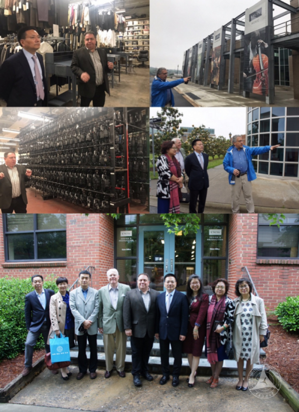 北卡罗莱纳艺术学院是美国首个公立音乐学院,设有本科、硕士专业。学院设有五个学系,分别是舞蹈系、设计与作品系、戏剧系、电影制作系和音乐系。代表团到访当天,北卡罗莱纳艺术学院副教务长和学生事务部主任沃特·科德维尔以及设计与作品系的院长迈克尔·凯里热情接待了代表团一行。科德维尔教授带领代表团参观了设在电影制作系内的全美第五大电影资料档案馆、电影院及其他学习和制作空间;凯里教授带领代表团参观了服装舞美汇总馆,这是美国大学最大的服装汇总馆之一,代表团还参观了假体、化妆、服装制作、布景/道具制作等多个实验室。两位教授认为北卡罗莱纳艺术学院的最大特色是产学研一体化的教学模式,该校与迪士尼等美国影视、音乐、艺术产业紧密相连,其教学流程与一线工作流程完全一致, 98%的学生在毕业前就能获得多个工作机会。