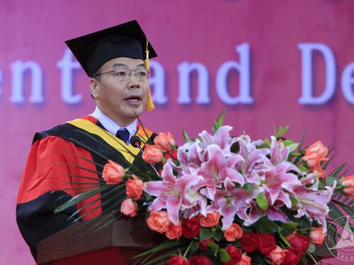 祝愿大家从这里出发,向无垠的世界启程,“肩上担中国,胸中装世界”,以饱满的家国情怀投身伟大的事业,让中国更好,让世界更美。