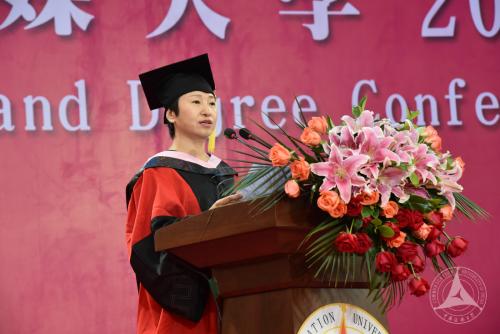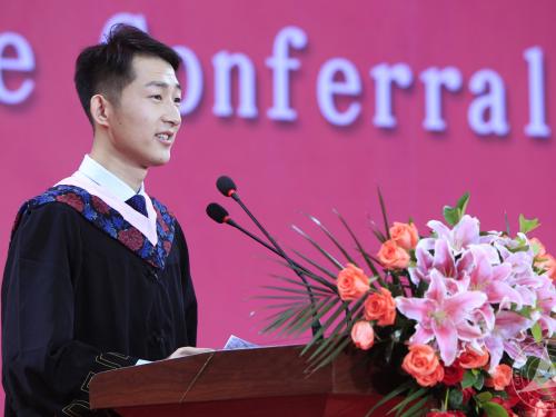 本科毕业生代表、广告学院2013级网络与新媒体(新媒体网络经营方向)高国华,研究生毕业生代表、新闻传播学部电视学院2014级国际新闻传播硕士班卢烨,留学生毕业生代表、来自塞尔维亚的文法学部2015级汉语国际教育专业硕士研究生叶莱娜,学生家长代表王彦分别发言。