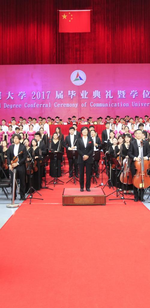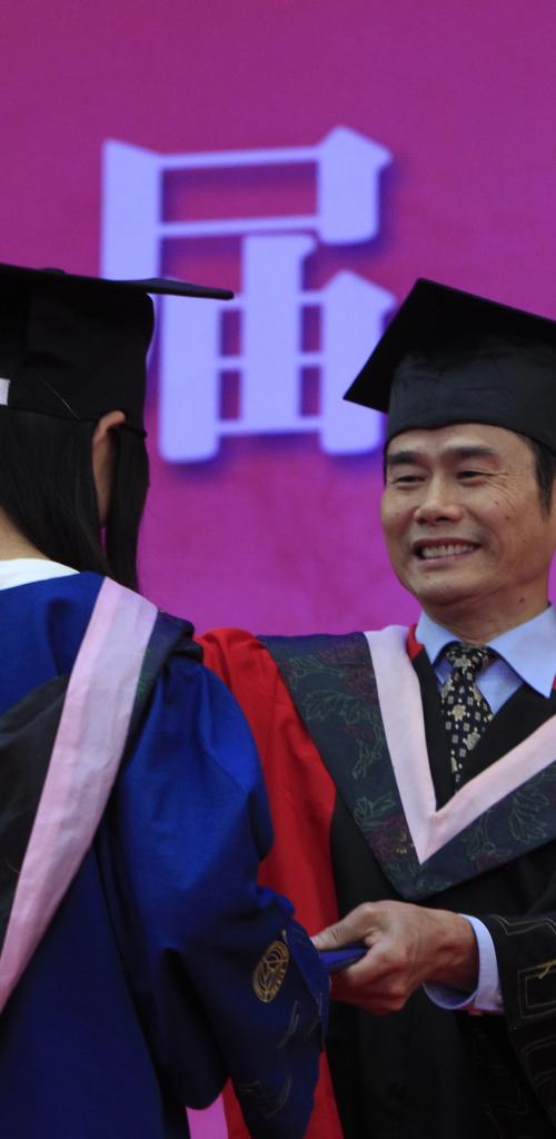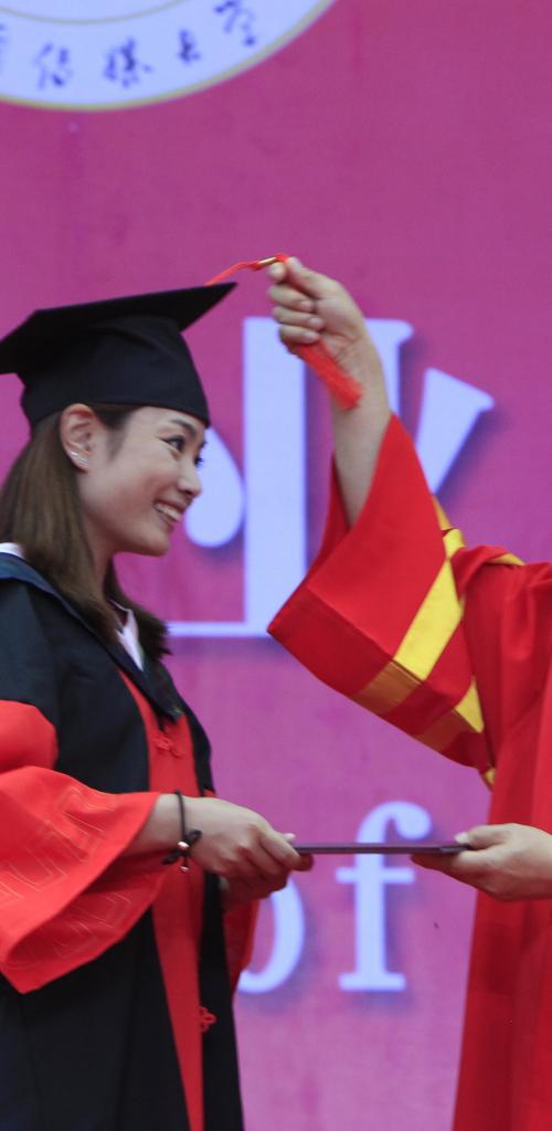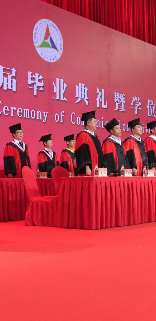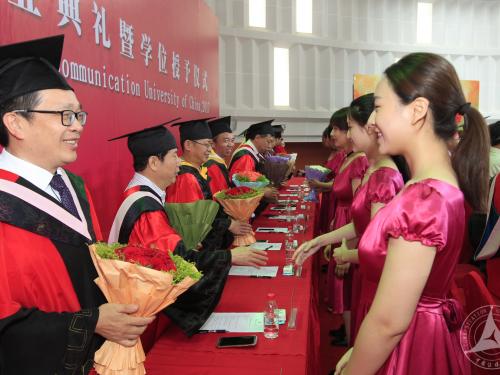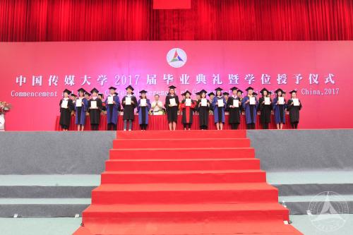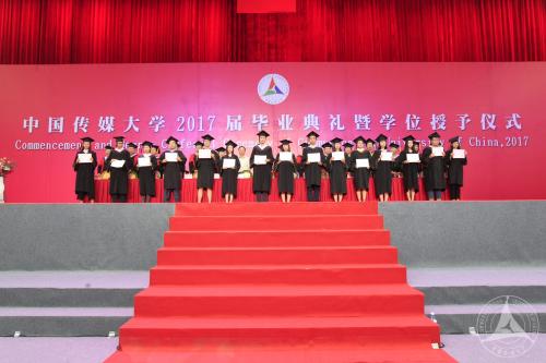 胡正荣校长逐一为获得博士学位的毕业生拨穗、颁发学位证书,并与每一位毕业生合影留念。陈文申书记、胡正荣校长等全体校领导,校学位评定委员会委员,2017届毕业研究生所属学部、学院的领导为获得学士学位硕士学位的毕业生拨穗并颁发学位证书。