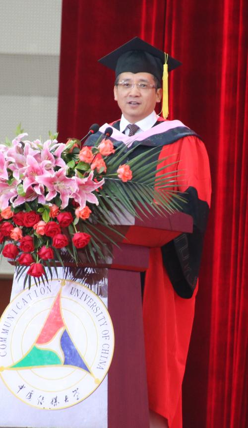 校长、学位评定委员会主席胡正荣教授在毕业典礼上致辞。他代表学校向全体教职员工的辛勤努力,父母的辛苦哺育表示诚挚的感谢!向广大毕业生致以最热烈的祝贺!胡校长称,学校感谢毕业生们用出色的学业成绩,为自己增光,也为学校添彩;用精彩的校园活动,凝聚着力量,塑造着形象;用积极的人生态度,锻造了情谊,打造了共同体。