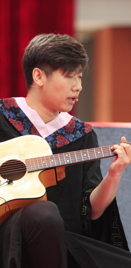 在文艺表演环节,来自不同专业的同学用自己原创的歌曲,表达了对父母亲的感谢,以及对母校深深的眷恋。随后,全体同学饱含深情地合唱了校歌《年轻的白杨》,青春欢快的歌声响彻全场。