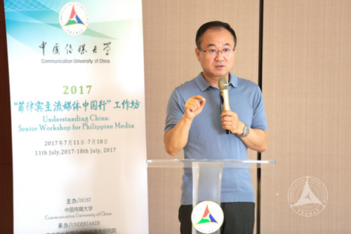 (通讯员 石柱)7月12日上午,胡正荣校长出席“菲律宾主流媒体中国行”工作坊开班仪式,并向代表团一行表达热烈欢迎和诚挚问候。