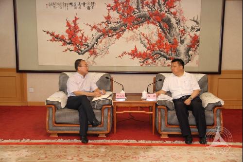 (通讯员 张磊) 7月26日,胡正荣校长一行赴北京市朝阳区,与区领导座谈交流,商讨区校合作事宜。区委书记吴桂英同志会见了胡校长一行,区委副书记、区长王灏同志主持座谈会,区委常委、副区长孙其军同志参加了会谈。
