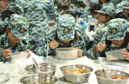 上午,同学们整队、分班、入住,就餐、学习并进行内务整理等。