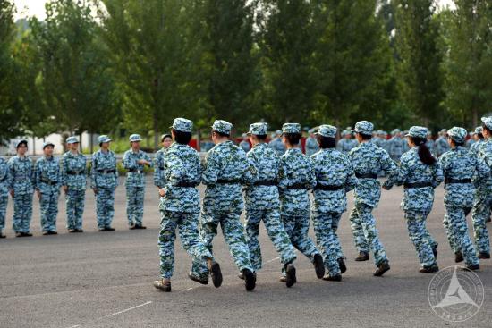 早饭后,各连队集合,在参谋长宣布训练计划后分别带开,按照训练进程顺序展开队列训练,训练内容中包括,立正、稍息、整理容装、起立、蹲、坐、看齐、转体、齐步走等基本动作。这些基本动作同学们在中学阶段大都学习过,教官会根据同学们的掌握程度循序渐进,适当调整训练内容和时间长短的衔接。训练结束时,连和全团演讲评。