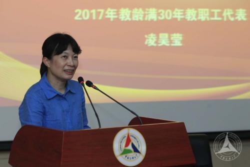2017年“全国巾帼建功标兵”、“北京市三八红旗手”、“首都劳动奖章”获得者鲁景超、2016年北京市师德先锋称号获得者代表毛明华、2017年北京市优秀教师称号获得者代表吴敏苏、北京市教学名师奖获奖者代表陈晓鸥、北京市高校青教赛获奖者代表付晓光、2017年教龄满30年教职工代表凌昊莹在会上发言,畅谈了他们在各自工作岗位上的体会,诠释了他们对教师职业的理解,分享了如何做好学生引路人的感受。