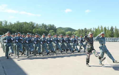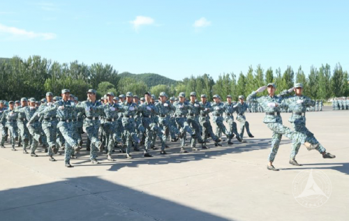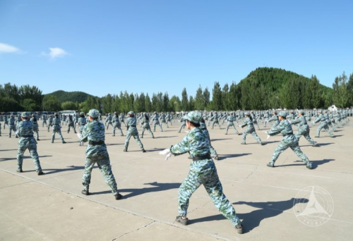 在军训科目汇报表演中,同学们分别汇报了军体拳、匕首操、刺杀操、内务和紧急集合、格斗拳、旗语、拼图组字和队列方队等科目的训练情况,训练场上,杀声阵阵,回响在燕山山谷和基地上空。各方队表演中,除了整齐的方块队以外,在旗语、匕首操等科目表演中,还变换了队形,多方向,分块动作,增加了难度,也增加了观赏性。