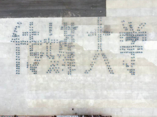 “立德、敬业、博学、竞先”、“祝愿母校明天更加美好”,旗语方队的同学们除了向首长、老师们问好外,还用旗语表达了对母校的祝愿和对军训的纪念。