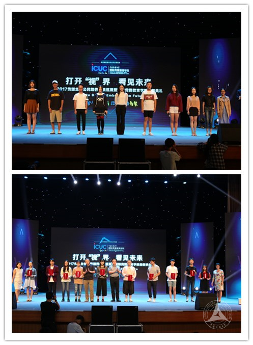 与此同时,在此次迎新典礼上,学院特别设立“GMC年度大使”、“GMC年度优秀作品”颁奖环节,表彰和鼓励那些在个人学业、学院社团活动及个人创作成果方面有突出表现的个人和团队。“GMC年度大使”、“GMC年度优秀作品”代表着的是一份荣誉,承载着的是个人和团队在ICUC的成长和收获,彰显的是ICUC优秀学子们那份榜样的力量。国际传媒教育学院学生的成长与进步,离不开学校各部门老师的关心和指导,活动特别邀请了学校外国语学院院长李佐文教授、马克思主义学院院长张付教授、传媒博物馆馆长潘力教授、研究生院副院长舒笑梅教授、教务处副处长许一新老师、宣传部副部长裴鸣老师、资产处副处长荆莆华老师、电视台副台长宣宝剑老师、网络文化建设与管理办公室副主任王维家老师、传媒博物馆副馆长吴志勇老师、传媒博物馆陈继东主任,同我院领导及外籍教师为获奖学生颁奖。