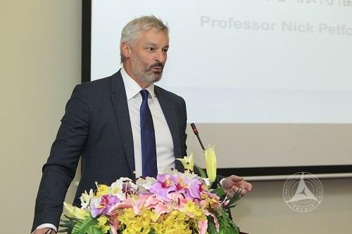 任金州教授介绍了派特福德教授的学术成就。派特福德教授是理学博士,担任英国北安普顿大学校长,也担任英国皇家学会地学研究员、英国皇家艺术学院会员、英国剑桥大学丘吉尔学院研究员等。派特福德教授是世界知名的地学研究者,发表了超过250篇期刊论文、摘要、书评等文章。他还以科学家主持人的身份多次参与英国广播公司、第四频道、国家地理和气象频道的重大自然灾害报道节目。