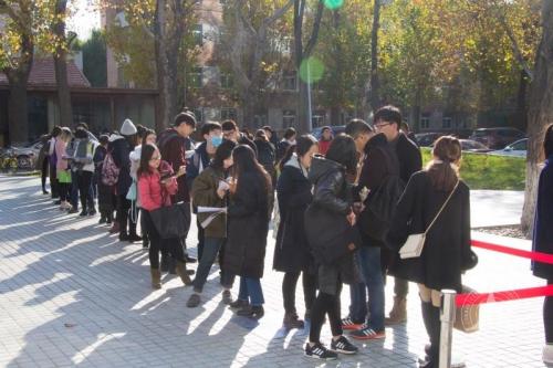 下午两点前,双选会还未正式开始,已有不少毕业生手持简历在入口处排起了长队。双选会开始后,毕业生积极与校友企业面对面交流,相互了解,洽谈就业意向。