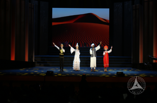 我校学生与来自清华大学、北京大学、中国人民大学、重庆大学、武汉大学、暨南大学、苏州大学、辽宁大学、河南大学、东北师范大学、台湾世新大学、澳门科技大学的学子共同朗诵了《少年中国说》等作品。来自俄罗斯、哈萨克斯坦、吉尔吉斯斯坦、苏丹的西北师范大学留学生们则以汉语为纽带、以古代丝绸之路为线索同台上演了《边塞古诗串烧》。