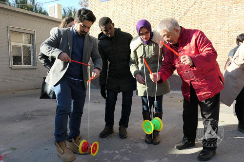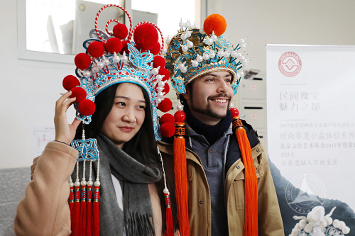 “传•承”主题大师课,二十多位国家级、市级非物质文化遗产项目传承人通过作品展示、技艺展示、以及面对面互动方式与留学生进行交流对话。此次进校园的非遗项目包括北京内画鼻烟壶、彩塑京剧脸谱、北京砖雕、戏曲盔头制作技艺、北京刻瓷、北京雕漆、京作核雕、面人(北京面人郎)、木板水印技艺、昆曲、抖空竹、踢花毽、北京琴书、北京皮影戏等。参加活动的留学生们纷纷被中国优秀的传统文化所吸引,个个兴趣盎然,一边欣赏、体验,一边积极用汉语与大师们直接交流对话。两个半小时的体验活动结束后,留学生们依然意犹未尽,久久不想离去。大家表示,喜欢这样的活动,希望以后还会有这样的活动。