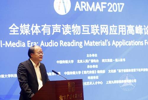 文化部文化科技司司长孙若风、文化部文化艺术人才中心党委书记张希光、中国广播电影电视社会组织联合会副会长李京盛、中国城市文化产业发展联盟执行主席张斌、北京人民广播电台总编辑王秋先后讲话并对首届全媒体有声读物互联网应用高峰论坛的召开表示祝贺。