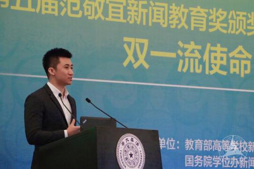 (通讯员 赵晨)近日,第五届范敬宜新闻教育奖公布获奖名单,我校新闻传播学部2015级国际新闻传播硕士班的谷琛同学,凭借一系列创新型的重大主题新媒体报道作品获得“新闻学子奖”。这是新闻传播学部学生第五次获得范敬宜新闻教育奖。